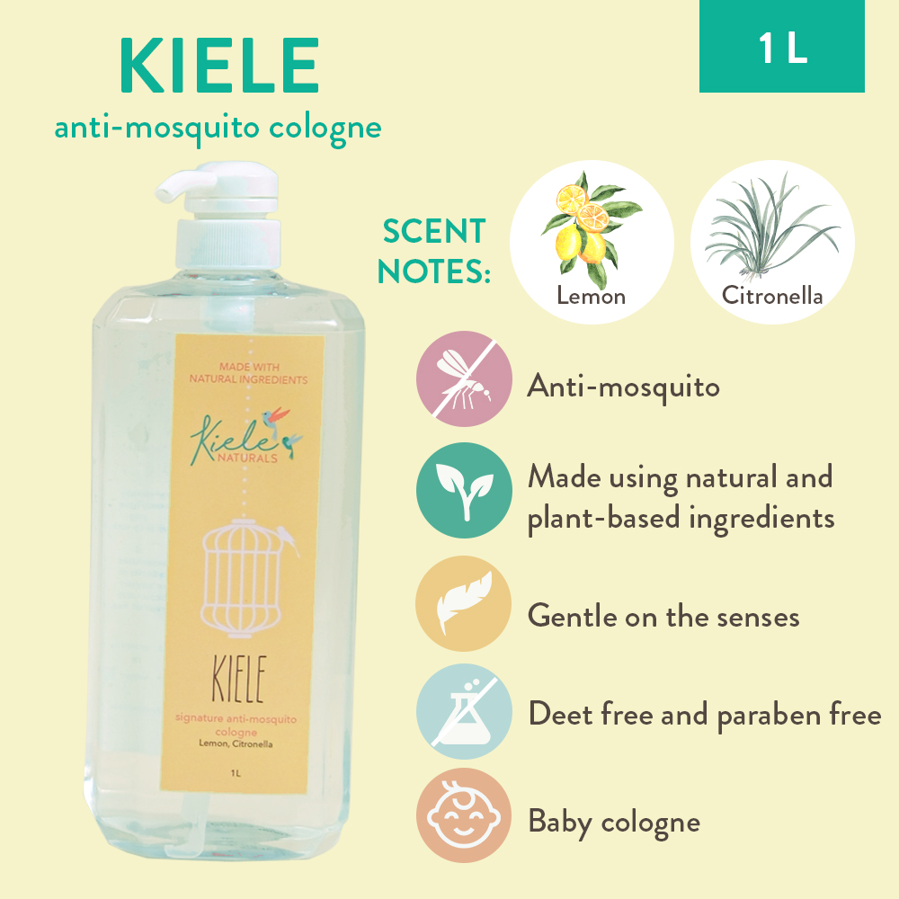 1 Liter refill of Kiele Anti-Mosquito Baby Cologne perfect for transferring to smaller vials or just refilling your anti-mosquito bottles!