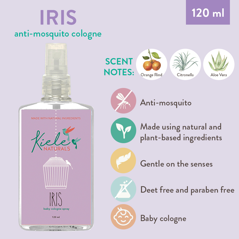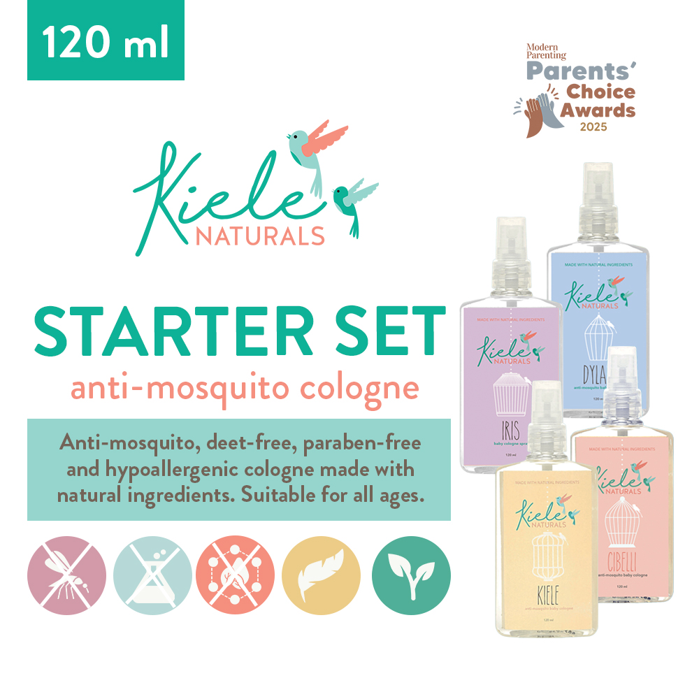 The perfect set exists – stay protected from mosquitoes while smelling fresh all day long! Get all four 120mL anti-mosquito colognes, Iris, Cibelli, Dylan and Kiele for a bundled price PLUS a free special edition Kiele Naturals box!